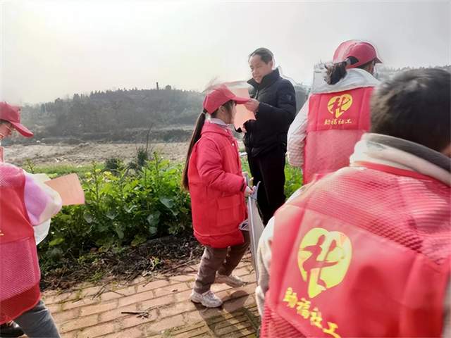 为传承和弘扬“奉献、友爱、互助、进步”的志愿服务精神,引导我辖区未成年人参与形式多样的文明实践志愿服务,丰富未成年人精神文化生活。在区、镇两级民政领导的研究决定下,组建了“守望山水乡愁地”未成年人志愿服务队,2月25日,助福社工在涂家垴镇凃镇村举行了“守望山水乡愁地”未成年人“共缔美丽梁子湖”清洁家园志愿服务队组队仪式,参与人数有20余人。