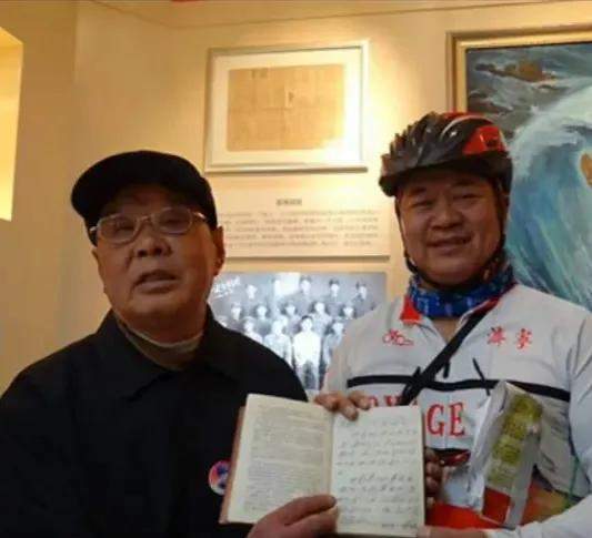 在展览馆,纪念馆导游小高向骑友们介绍道:“刘成德同志,长清区归德镇薛庄村退休工人,是当年雷锋同志的战友。1961年3月一次执行海上任务时,刘成德不顾自身安危,勇救触礁遇险的14名战友,荣立二等功。出席沈阳军区首届团代会时,他与雷锋同台受奖。雷锋给他的留言: