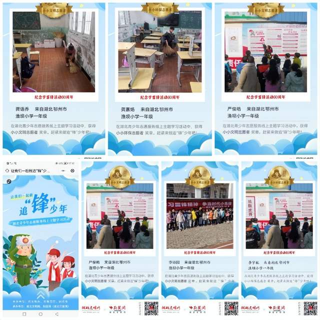 2023年是纪念雷锋第60周年,为深入贯彻党的二十大精神,围绕立德树人根本任务,以传承弘扬雷锋精神为主题,以培养好品德好行为好习惯为目标,鄂州市临空经济区沙窝乡渔坝小学线上线下开展了“传承雷锋精神,不负时代重托”主题教育实践活动。
