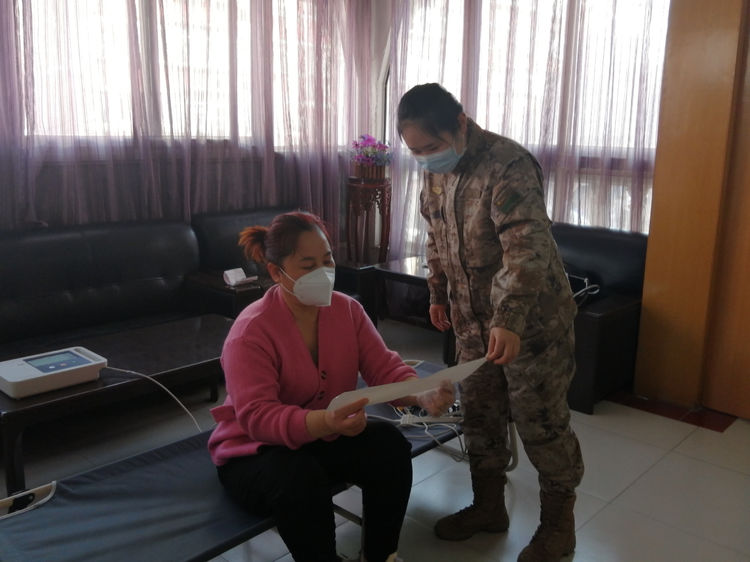 天气回暖,阳光明媚,上午9点义诊活动也随着前来问诊居民的到来开始了。此次义诊共有100多名社区居民参加,活动主要为残疾人、环卫工人、社区老年人免费提供眼科检测、牙科检查、心电图检测等各项服务。活动开始后,前来问诊的居民络绎不绝,有的排队测心电图,有的咨询心脏健康问题。“大姨,您的高压172,低压73,您这高压确实是高了啊,降压药还是得吃啊”。干部文职医师对社区老人臧淑萍认真叮嘱到,并根据臧淑萍老人的日常生活习惯提出治疗的建议。臧淑萍十分感动的说道:“这次能来给我们这些社区老年人做义诊非常感谢,都把我们放在心上,非常认真负责,雷锋精神代代传精神是值得我们所有人去学习的”。
