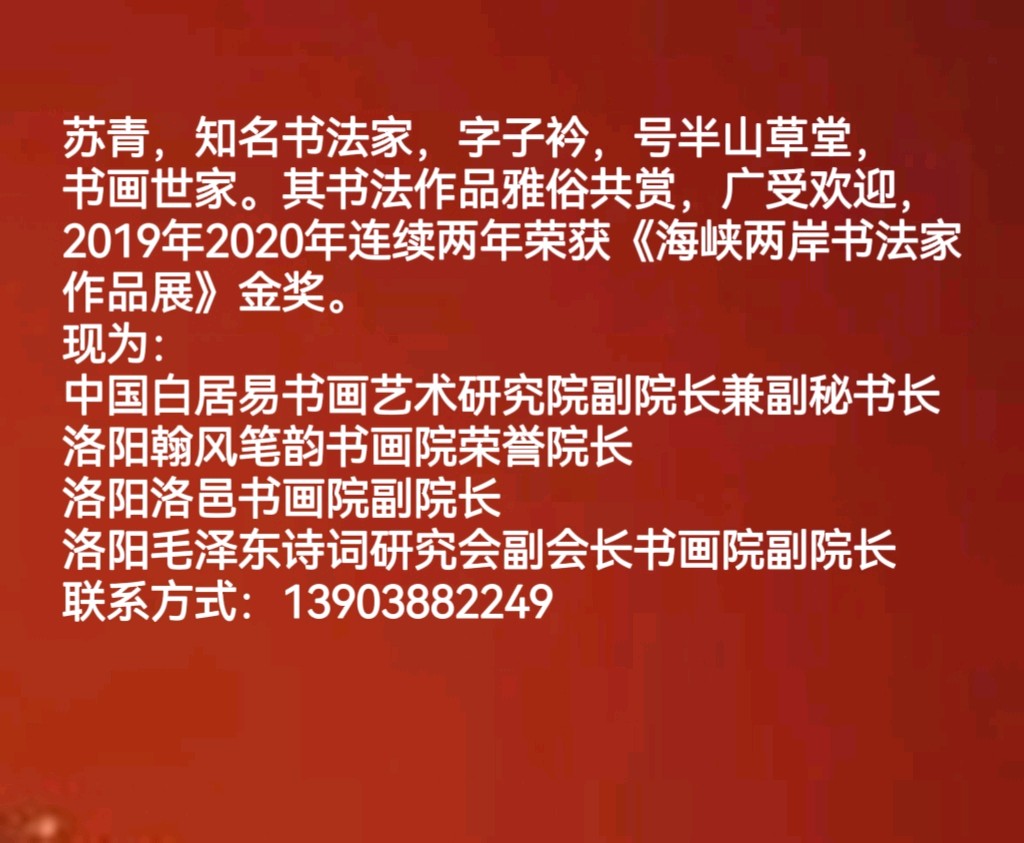中国白居易书画艺术研究院苏青副院长书法作品欣赏