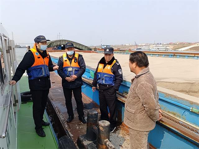 该所民警与长江海事工作人员一起,登船开展普法宣传,向码头上靠泊作业的船员、码头工人发放《长江保护法》宣传手册,并开展现场释法,号召广大涉水船员自觉学法守法,积极落实水上安全相关措施。