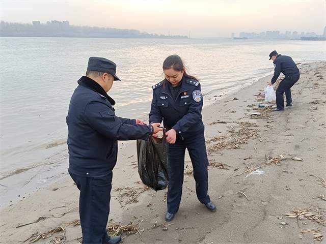 民警还登上辖区江心沙洲沿线捡拾垃圾、清理杂物,对白色垃圾和废弃物品进行了集中处理,用实际行动维护了辖区长江生态环境。