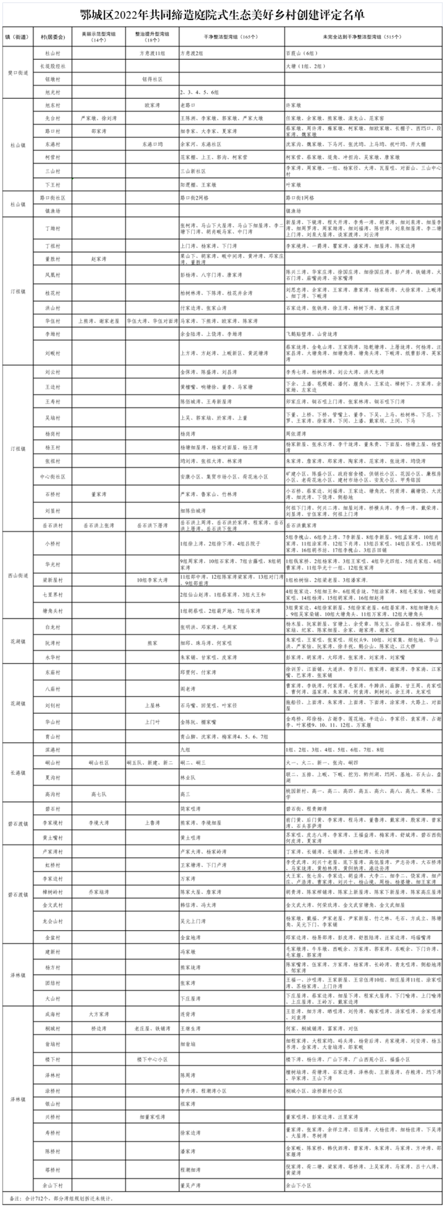 附件:1.鄂城区2022年共同缔造庭院式生态美好乡村创建评定名单;