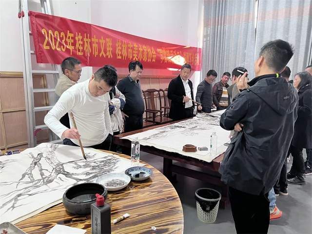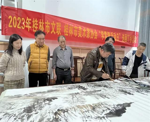 3月5日下午,桂林市美协组织美术工作者十多人赴临桂区临桂镇大宅村开展“送画下乡”活动。大宅村风光秀丽,崇文尚学,从这里走出很多书画人才。近年来,在乡村振兴的道路上,大宅村也迈开了快速发展的时代步伐。这次的“送画下乡”文艺志愿服务活动,美术工作者们与村民们一起踏青采风,与村里的书画爱好者一起交流学习,现场挥毫作画,用丹青共同书写新时代乡村振兴的新景象,用中华优秀传统文化浸润心灵,用艺术传递向上向善的社会力量,赓续新时代的雷锋精神。桂林市政协副主席郑毅莅临指导。