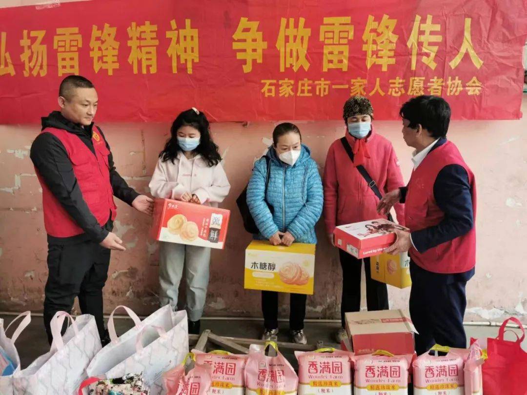 石家庄一家人志愿者团队负责人温德军和志愿者刘意、范永强、李合联合市裕华区、长安区、桥西区各妇联,与20多位女工在一起过节,并送去节日的问候。