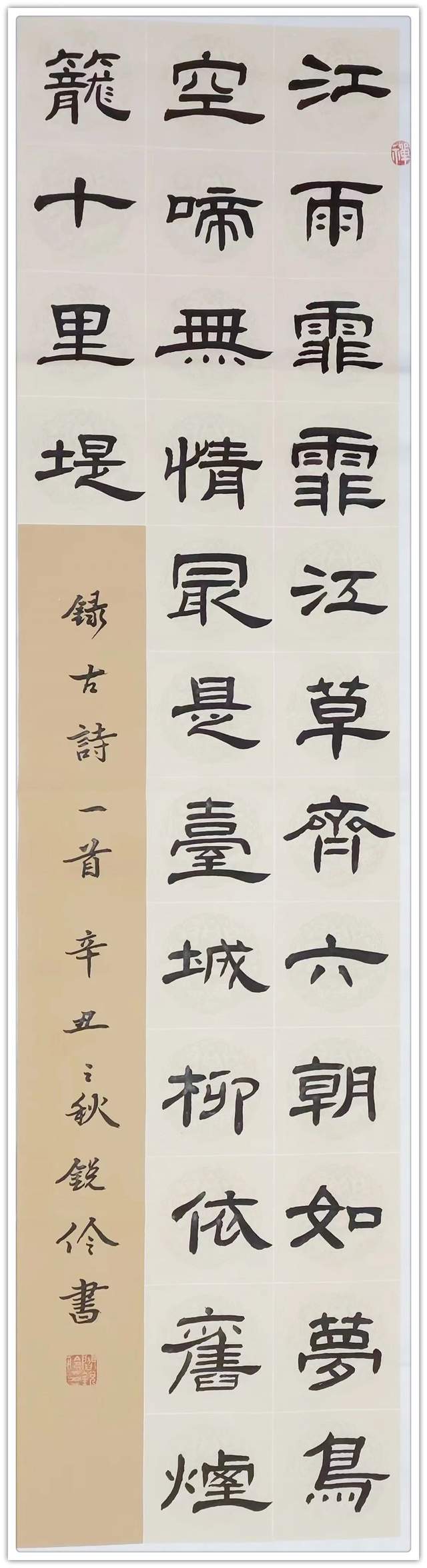 2022年书法作品入选“永远跟党走—北京市离退休干部庆祝中国共产党成立100周年书画艺术作品展”。