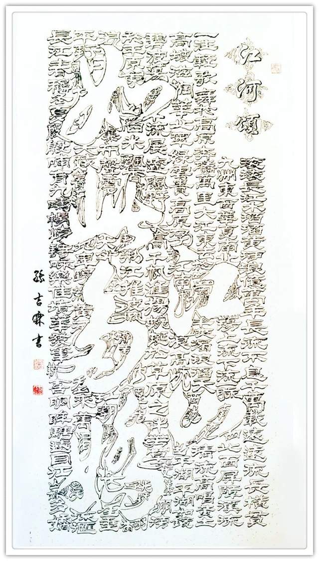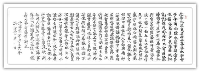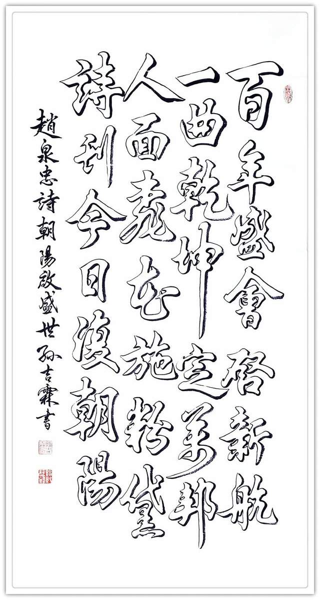 一笔双钩绝拍案,翰墨雄才书奇观。孙先生传统书法写得出神入化,又有一笔双钩的法度专享!谈及双钩法,冯承素钩兰亭是佳谈!如今,孙先生借古开今,有别于冯本兰亭铺字而描的“技术性操作”,而是底无蓝本可描,单凭心构空间的强大想象力!是笔线直接钩出华章的新造诣!线作兰亭之风,写得天朗气清,惠风和畅。又有粗细映立体的独特表达,字字可突盈纸面,大有空间质感!这是感性与理性相互加持的书法奇观,望古观今,从未所见。唯有先生可施此法!这样的书法作品,可以装饰万家屏障,成为先生在书坛大颂口碑的见证!品味其书,又有感叹:翰墨渊妙,代不绝人。雄才再现,真实不虚!