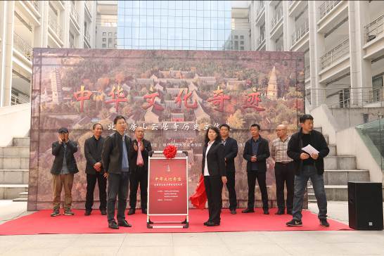 为传承中华优秀传统文化,弘扬石经精神,讲好云居故事,深入发掘云居寺独特的历史底蕴,让珍贵的文物“活”起来,2023年3月8日上午,“中华文化奇迹”——北京房山云居寺历史文化展走进安徽,在阜阳师范大学正式开展, 为当地群众奉献了一道有着1400年历史积淀的文化盛宴。展期为2个月。阜阳师范大学美术学院党委书记曹礼品、阜阳师范大学美术学院院长魏亮、阜阳师范大学外国语学院党委书记刘张飞、阜阳师范大学外国语学院院长赵从义、北京房山云居寺文物管理处党群科科长唐汝杰等嘉宾出席展览开幕式。