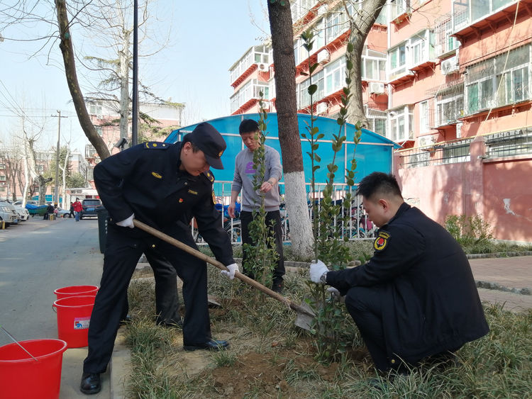 活动现场,市中区城管局为七东社区捐赠了冬青和迎春花树苗,大家欢声笑语、其乐融融,刨坑、扶苗、培土、浇水……齐心协力共同把每一株树苗种植到社区遍地,用实际行动为社区增添一片片生机勃勃的绿色。
