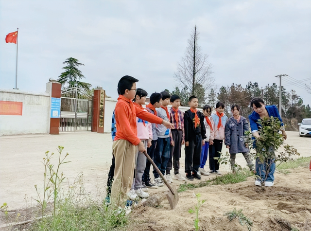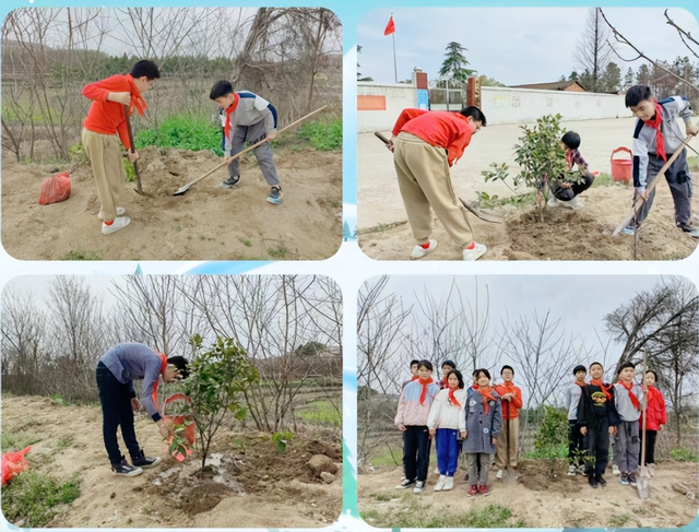 你看,同学们纷纷兴致勃勃地参与其中,铲土、栽种、用心浇灌。想象小树苗在阳光下茁壮成长,他们无比欢喜!植下一棵树,收获万点绿。
