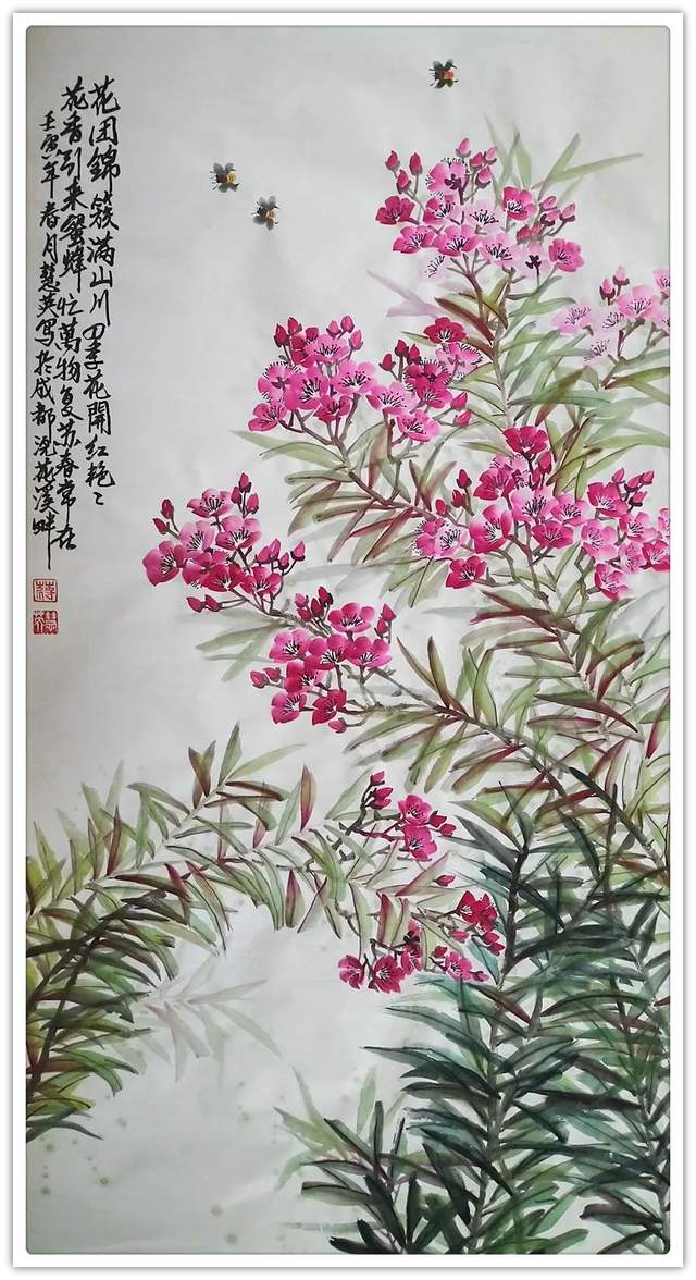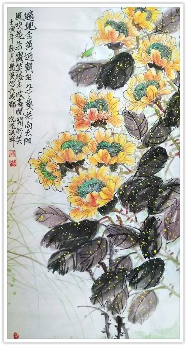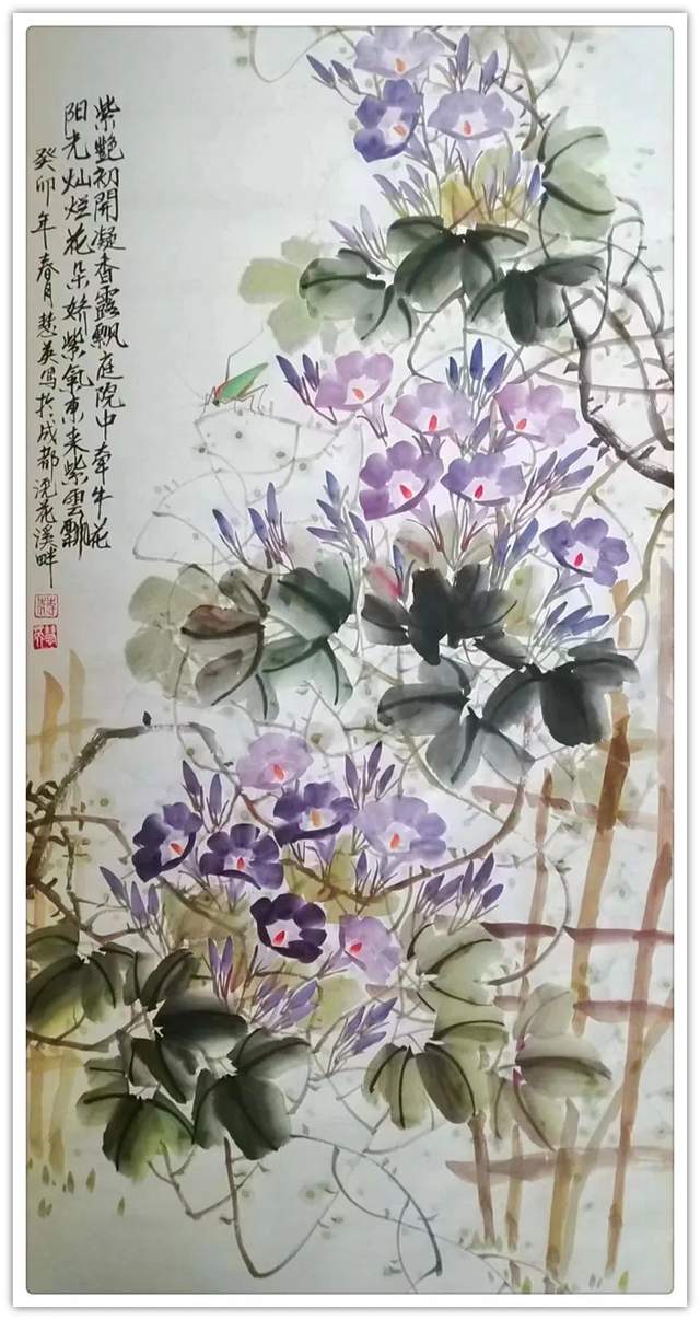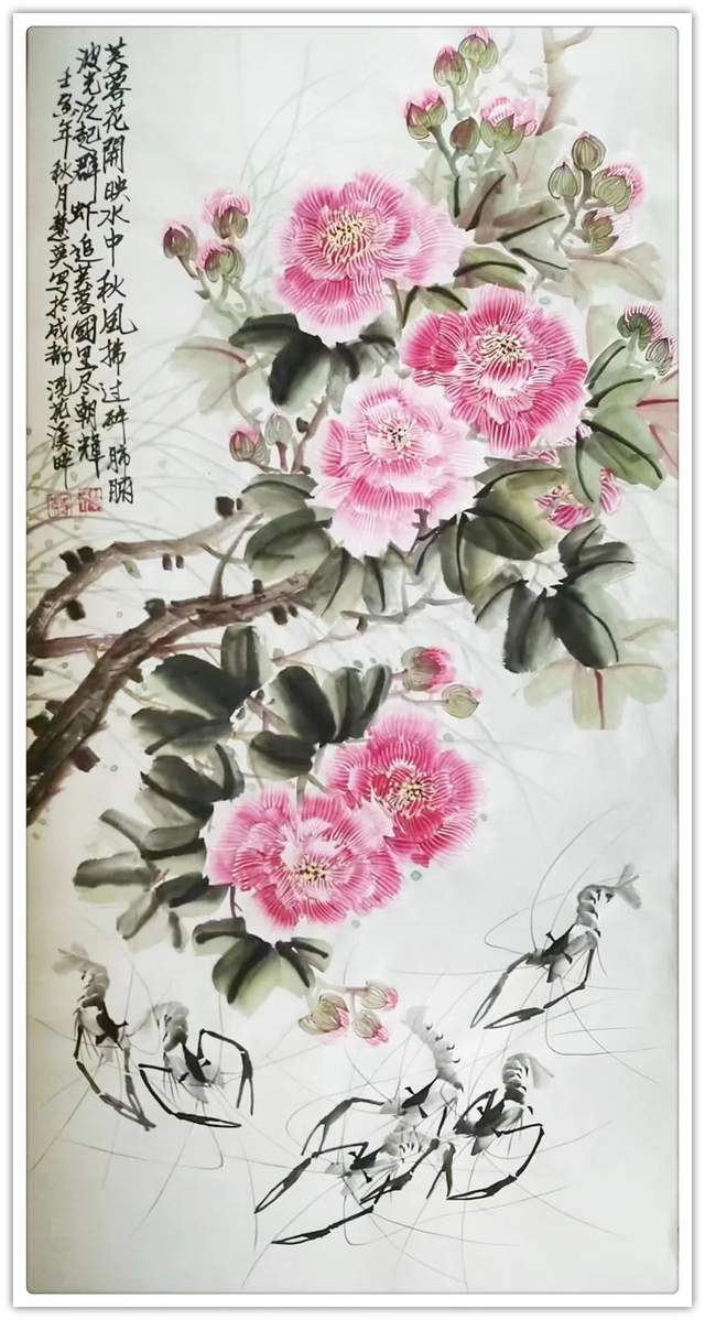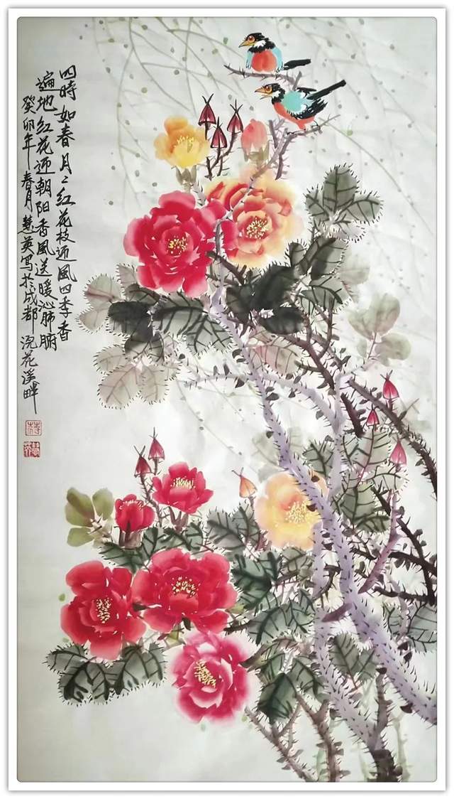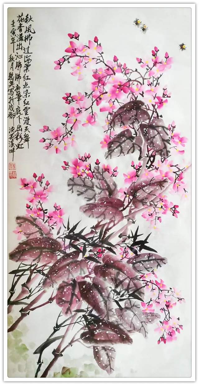 还有《秋风拂过海棠红》这里面既没有涂得乱,也没有抹的浊,干干净净画天朗,清水濯洗绘气清,秋风秋韵,扑面盈心,如读过的一首唐诗,如诵过的一首宋词,越看越有滋味,极其耐读。作为一名女画家,蒋慧英女士为当代画坛奉献了非常令人陶醉的丹青佳作,让人在惠风和畅的气氛里游目骋怀,足以极视听之娱!