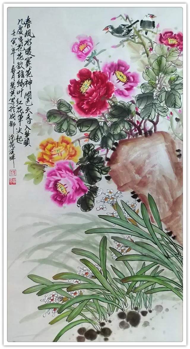纤尘不染绘丹青,万类之像显形神。她把牡丹的自然属性与文化内涵完美地统一在一起,看是一幅丹青美图,觉是吉祥富贵意,达成了雅俗共赏,可以装饰万家屏障的艺术魅力。所以她的作品参加展出是金奖之尊,收藏则为琼花玉蕊,是为当代美术的惊艳佳作,可以承载丹青文化春秋相传!