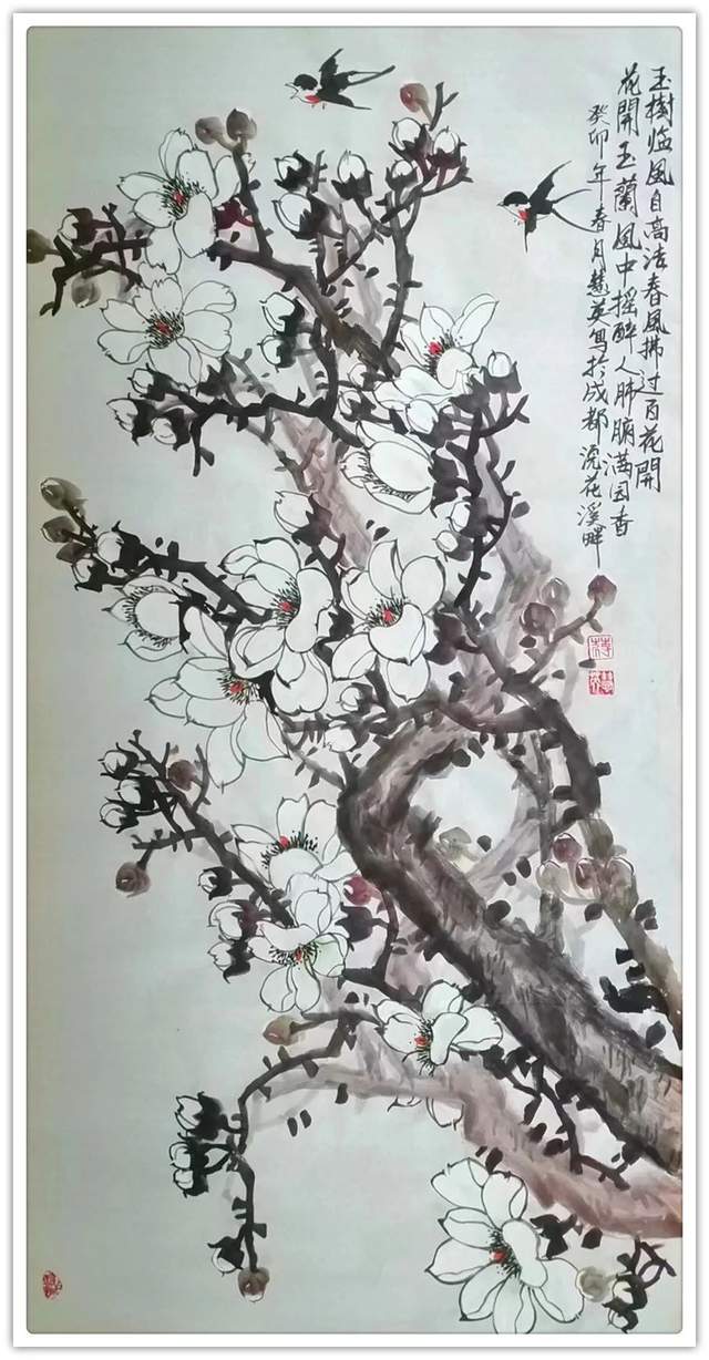 2020年被北京京华阁书画院聘为常务理事,参加全国网展《大家风范》,出版个人画册,中国艺术家。由天津美术出版社出版的台历,蒋慧英老师六幅花鸟画入选台历。人民日报海外版,向欧洲四十三个国家专版介绍了蒋慧英老师的十六幅花鸟画作品,宣传中国传统文化。