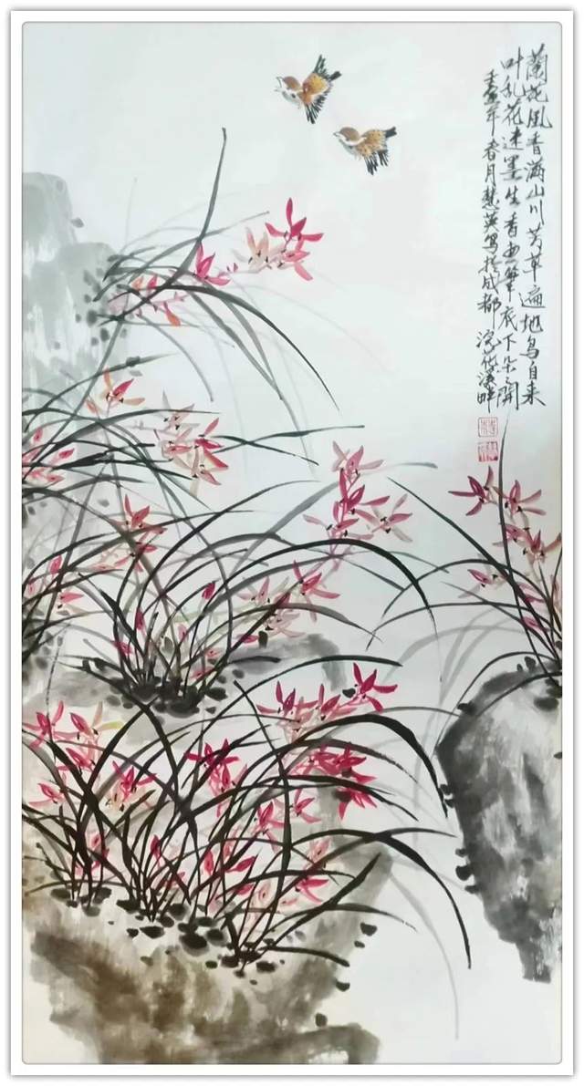 蒋慧英女士画画,画得这么臻美,如此干净,究其原因是与“专业”大有关系的。国画之法经过数千年的传承沉淀,形成了严谨的法度体系,必须像蒋慧英女士这样把传统画法作出精研覃思,才可以执笔作线条,让勾勒无有一笔糜软无力,无有一根线条成为散兵游勇!笔法精湛,善作骨风,比如画成的《孤芳不肯竞春艳》这件兰花作品,真可谓是骨法用笔,应物象形的典范!把兰花塑造得刚柔相济,清芬解秽,非常有精气神。在雅舍挂这样的一件作品,必定盈满文化气象,是谓雅俗共赏的上上品!