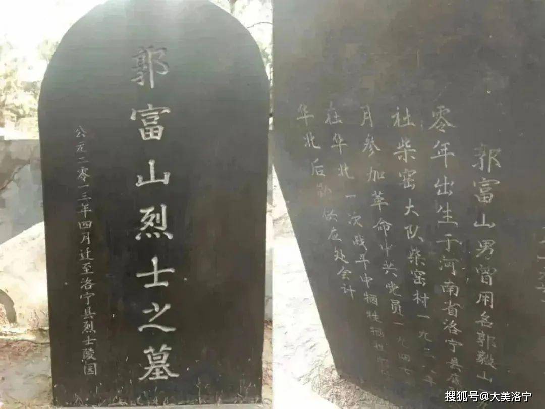 2013年4月,郭富山烈士之墓迁移到洛宁县烈士陵园,革命烈士纪念碑号为八十七号。