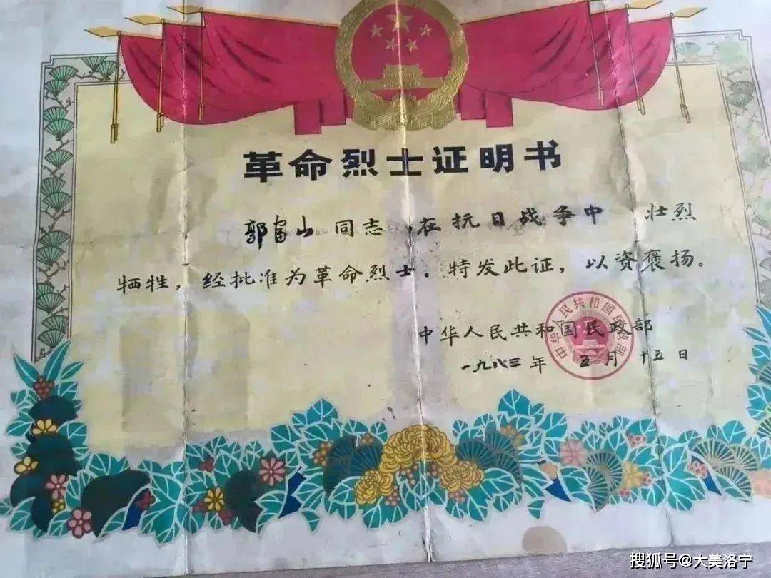 1983年洛宁县民政局上报民政部,追认郭富山为革命烈士,家属每月享受270元优抚待遇。