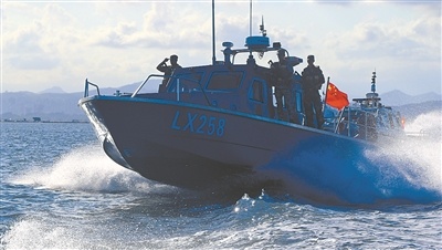 南部战区陆军某边防旅官兵驾艇出航展开水上巡逻。周彬宇摄