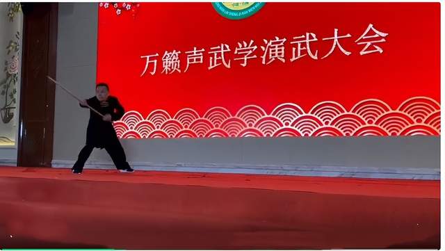 万师家乡葛店再传弟子何雪峰(鄂州市武术协会副会长)表演的九州棍。赢得了阵阵掌声。
