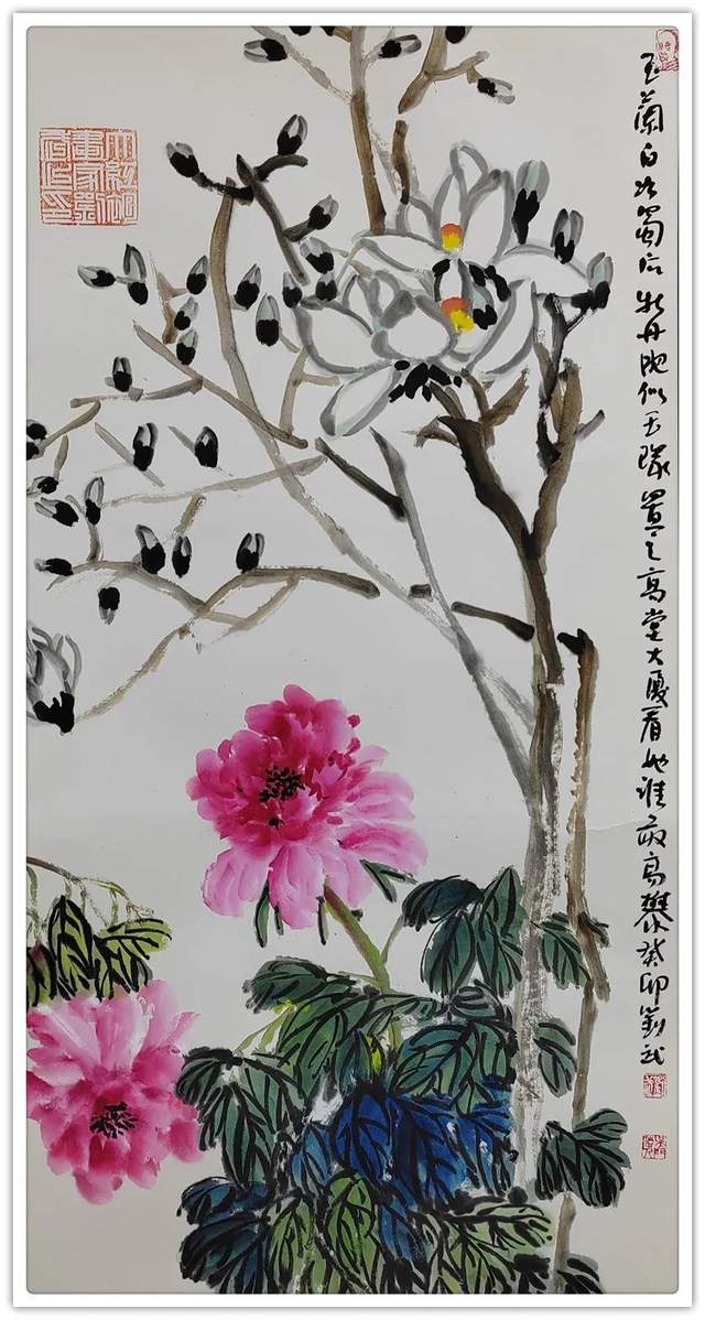 品读刘武君的画作已有多年。二十多年前,刘武君的画作多为浓墨重彩,尤其是他的牡丹,雍容华贵,色彩艳丽,很受大众喜欢,我们曾戏称为“刘牡丹”,一时传为佳话。为进一步提升画作水平,他用了很长一段时间学习书法,提升对于书法线条、墨色变化的掌握,这对于促进绘画创作大有裨益,也使他的画作水平大幅度提高,如此执着于创作实践数十年,用废了无数笔墨水彩和纸张,就是为了一个目标,那就是追逐今天的自己超越昨天的自己,明天的自己超越今天的自己。