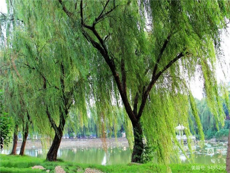 柳树是比较耐寒的。我家住二楼,窗前正对着一棵柳树。在乍暖还寒时就看见鹅黄色的柳芽探出头来。老辈人传下来的时令歌谣:“五九、六九,河沿看柳”。每年的早春二月,柳树就春意萌动,在众多树木中率先发芽,为人们送来一片新绿,柳树被誉为春天的使者。唐代诗人贺知章的《咏柳》诗,“碧玉妆成一树高,万条垂下绿丝绦。不知细叶谁裁出,二月春风似剪刀。”歌咏了春寒料峭中报春的柳树。一直到秋后初冬时它的叶子还是绿色,又是坚持到最后才落叶的。那细瘦的柳叶堪称是早出晚归的绿化“劳模”。