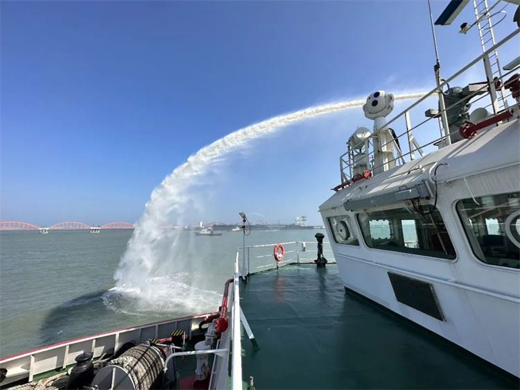 近日,在中石油广东石化公司原油码头,由广东石化公司与冀东油田海上应急救援响应中心联合组织开展的海上溢油围困、消防演练正在进行中。