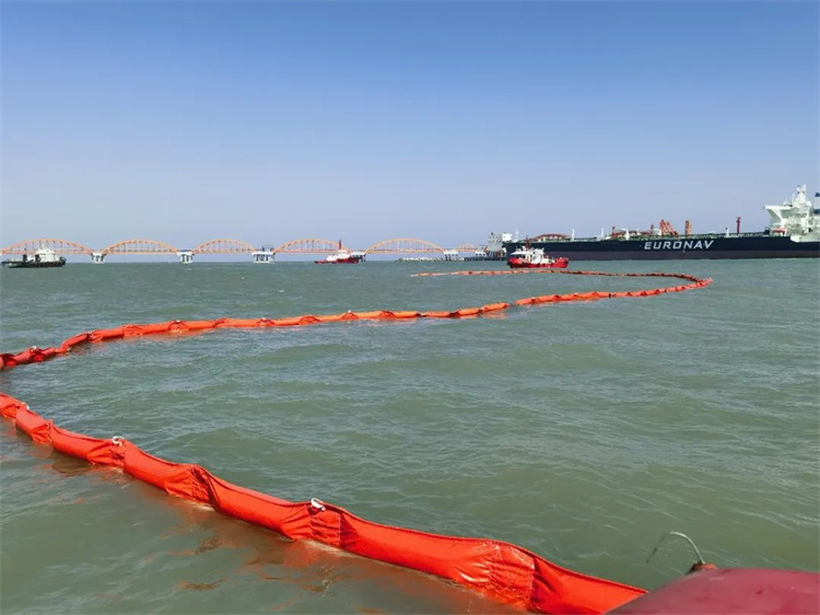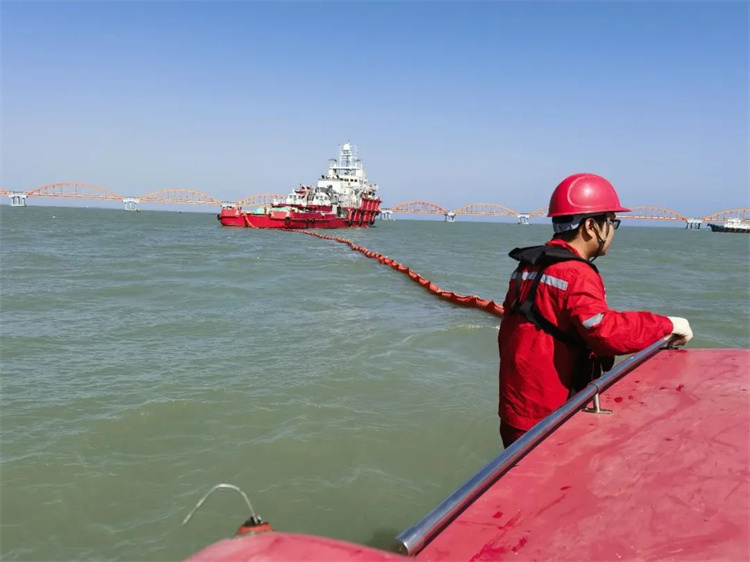 冀东油田海上应急中心“中油应急102”船布放PVC型围油栏240米。