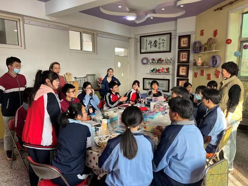 两校学生交流手工艺术品制作。