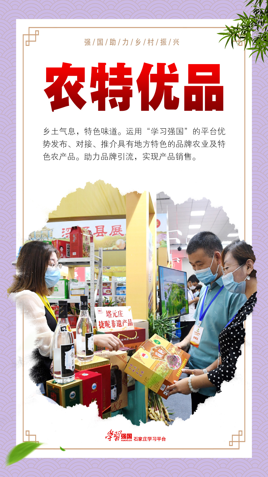 农特优品:乡土气息,特色味道。运用“学习强国”的平台优势发布、对接、推介具有地方特色的品牌农业及特色农产品。助力品牌引流,实现产品销售。
