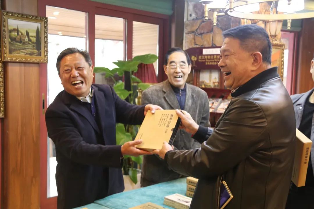 特邀嘉宾武汉经开区书画协会主席吴万昊,德贤堂书画社秘书长马鹏涛,德贤堂书画社成员及东风公司在汉书画爱好者共23人出席会议,德贤堂书画社副社长薛苏华主持会议。