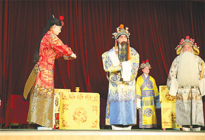图为武汉楚剧院到湖北省武汉市新洲区潘塘文化中心开展送戏下乡活动,演出经典剧目《打金枝》。王郭骥 摄