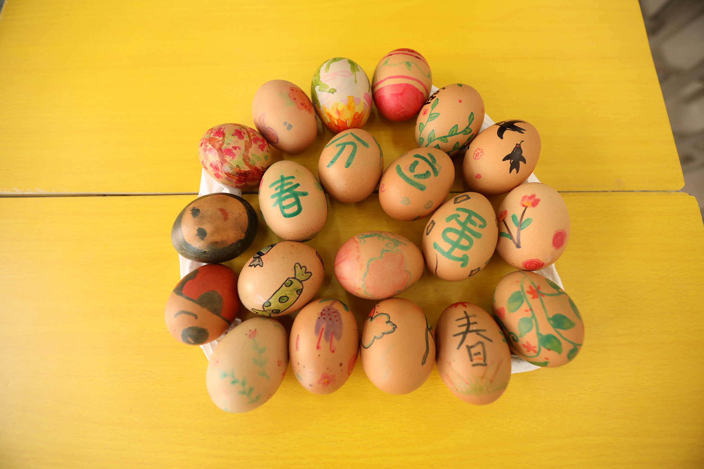 孩子们彩绘的鸡蛋。