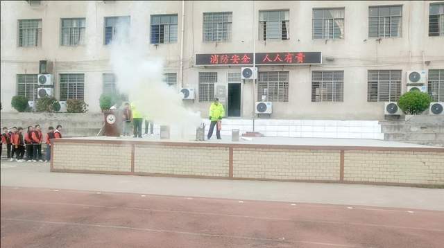 学生对消防知识有了初步的了解后,综治办主任周红俊和学校保安张坤元又采用“互动+体验”的方式演示了灭火器。他们边讲解边演示了灭火的两种方法:一种干粉灭火器灭火法,一种窒息灭火法。其中,更详细的讲述了干粉灭火器的正确使用方法,即“提、拔、瞄、压”。刘校长最后总结,强化火灾防控意识至关重要,要丰富消防安全知识储备,掌握灭火器正确使用方法,杜绝麻痹思想,坚决防范遏制校园安全事故。