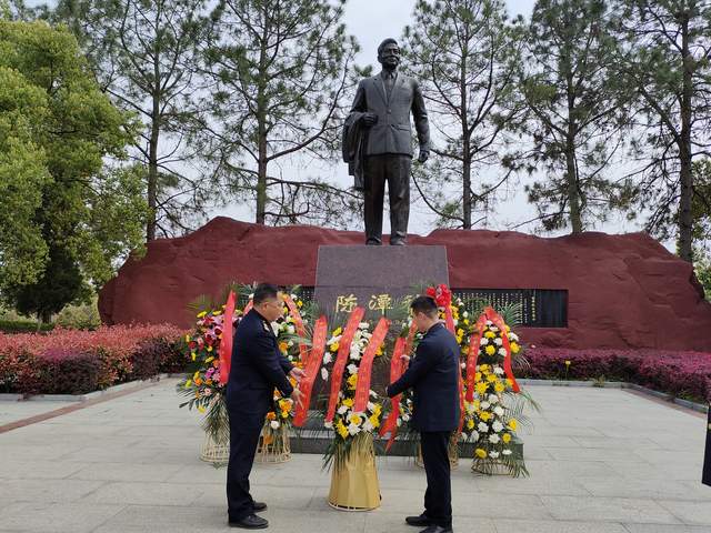 活动中,全体党员同志前往陈潭秋故居纪念馆开展清明祭扫纪念活动,在陈潭秋铜像前缅怀革命先烈、敬献花篮、重温入党誓词。