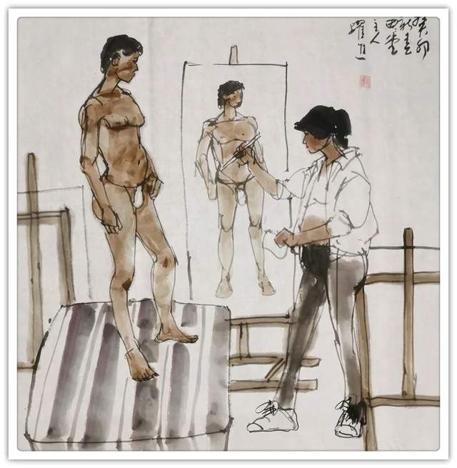 孙跃进先生精心研习书画艺术,无俗利之逐取,无虛名之追求,亦不以绘画而谋生活,所以他的丹青修炼,完全是出于修身养性,陶冶情操的目的。目的纯粹,画风超脱。纵观他的绘画作品,无一例外,都显发着丹青无挂碍,清许质如泉的透彻与明净。他毕业于中央美术学院徐悲鸿画院研修班,有着深厚的笔墨理论涵养,所以对外师造化中得心源法则理解特别深刻,实践特别执着。观人物姿态,心穷万物之源,不但是他的艺术目标,也是一-场永无止境的丹青修行。他能沟通心源与造化的双向对流,别人熟视无睹的人物景象,可以成为他描述人物造意的心灵感触。