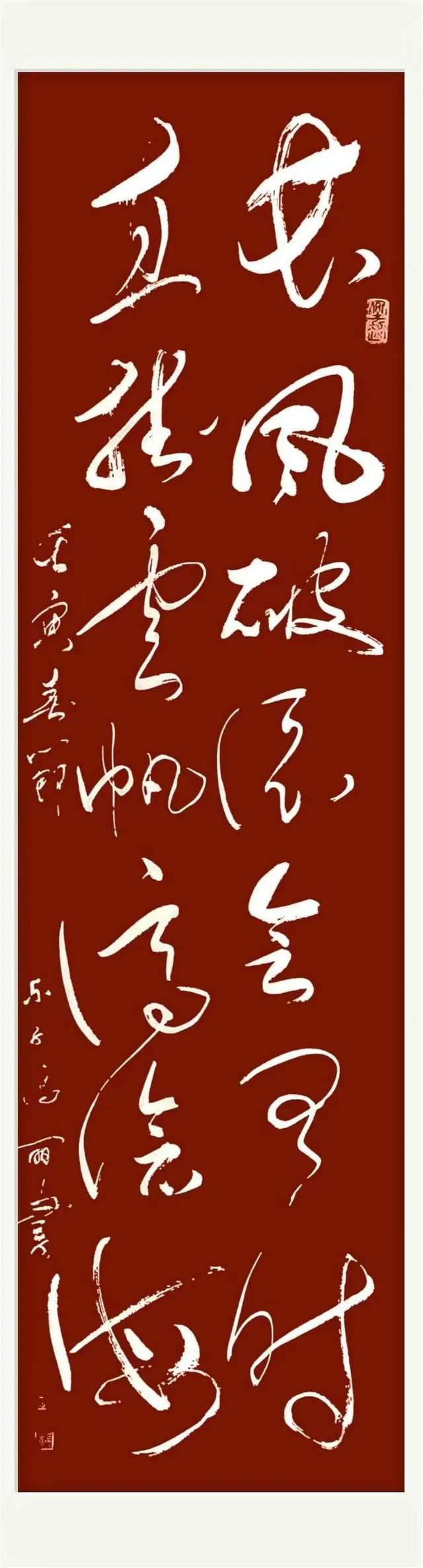 退休后更是挥毫泼墨书法艺海,把怀古书法艺术与当代书法艺术结合起来创作作品,受到不少书法爱好者的青睐。她的笔势既圆融遒劲、外柔内刚;又龙飞凤舞、奔腾豪放;她既楷、隶、篆、行、草五体皆来,又更彰显草书个性;她草书有貌似裙带飘扬,时而束身矩步,时有不可犯之势;可谓博采众长,自成体系。