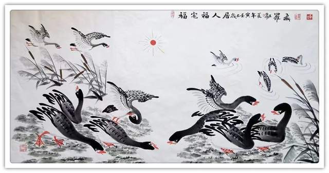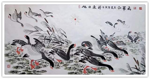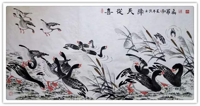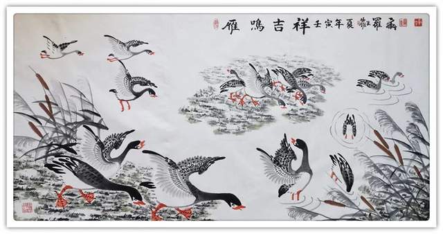 中华人民共和国国宾礼特供艺术家罗维存以专绘鸿雁著称当今画坛,他笔下的鸿雁如仙女下凡神态各异、食宿飞鸣、千姿百态、栩栩如生、神韵十足,表现出极大的生命力。北雁王·罗维存为人处事淡泊名利、重义情深、书生意气,学者风范。他的鸿雁作品让人心旷神怡。