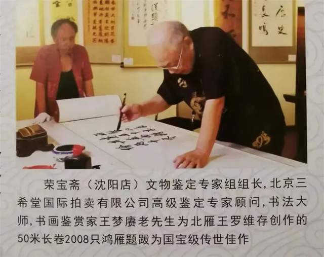 荣宝斋(沈阳店)文物鉴定专家组组长,北京三希堂国际拍卖有限公司高级鉴定专家顾问书法大师,书画鉴赏家。王梦赓老先生为北雁王;罗维存2008年创作的2008只鸿雁50米长卷,题跋鉴定为国宝级传世珍品;中国国家博物馆--捐赠证书,您捐赠的“罗维存题创50米鸿雁长卷及大型画册等共计3件实物”已被我馆收藏。特颁此证!中国国家博物馆;2020年8月27日。中宣部中央电视台颁发:时代楷模 · 笔尖下的中国奖杯。