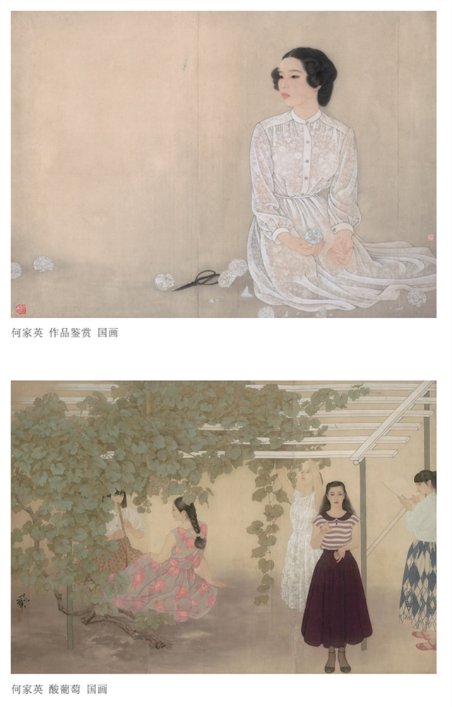 何家英,1957 年出生于天津。当代中国画坛的著名工笔人物画家。自幼喜爱画画,1977 年考入天津美术学院绘画系学习国画,1980 年毕业后留校任教。曾任第九、第十、第十一届全国政协委员;现任中央文史研究馆馆员,中国美协副主席、当代工笔画协会副会长、中国艺术研究院博士生导师、工笔画研究院院长,天津美术学院教授,天津画院名誉院长,天津美术家协会副主席,天津美术馆名誉馆长,中国工笔画协会副会长。曾获国家“有突出贡献的中青年专家”、中国文联“德艺双馨文艺工作者”、中宣部“四个一批”文艺人才等荣誉。