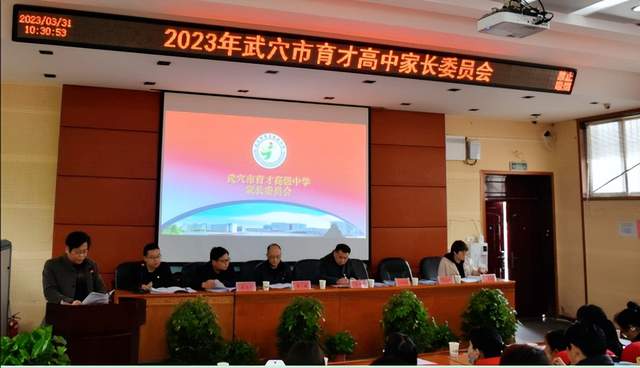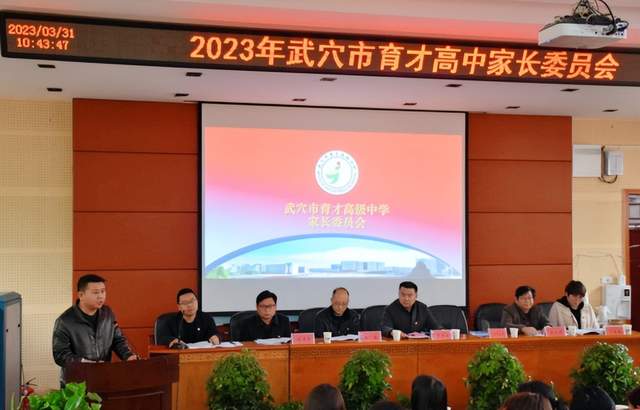 《今日黄冈》特约记者 田树兵 胡均星 通讯员 王汉中 陈少峰 李俊 陈宇 湖北武穴报道: “家校携手, 共同画出育才高中最大同心圆”。3月31日,武穴市育才高中召开2023年家委会会议,该校全体领导及家长代表参加会议,政教处主任余本干主持此次家委会。
