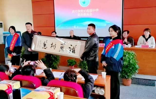 紧接着,该校副校长王汉中就《育才高中家长委员会成立方案》的机构组成,各级家长委员会的遴选程序和家长委员会的职责等五方面情况进行了详细说明。其中,宣布2023年家委会成员名单及颁发聘书同步进行。