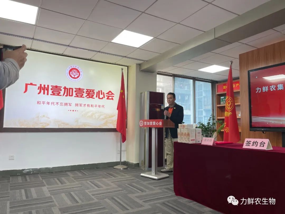 【央媒时代TOP中国品牌万里行中国时代周刊CCTV-TIME特别关注】4月1日上午,力鲜农集团向壹加壹爱心会捐赠一批11000盒价值308万元的能量球物资,用以帮助困难老兵、伤残军人、烈士家属及其他需要帮助的人士。这批物资将由广州壹加壹爱心会组织志愿者发放到每一位受捐人员手中。