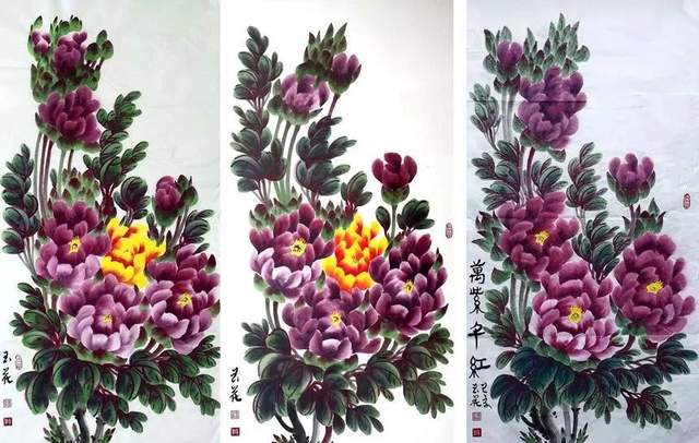 作品风格:工笔、写意、山水、泼墨泼彩山水、花鸟、人物古代仕女、书法创作;年画系列、油画系列、自画像古装系列、山水花鸟画系列、牡丹画系列、诗书画系列、扇面画系列、中国绣品画系列、中国瓷器画系列、书画长卷系列、丈二以上代表作系列。