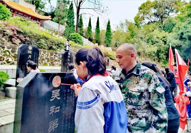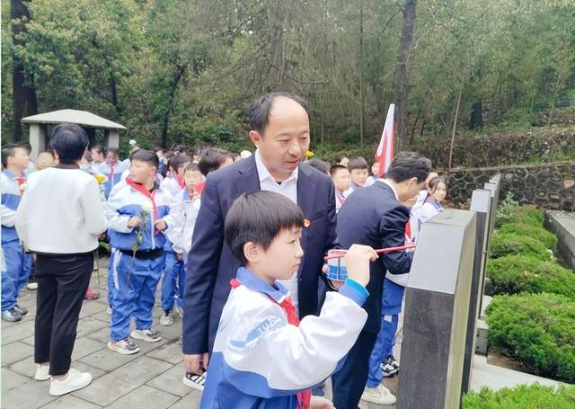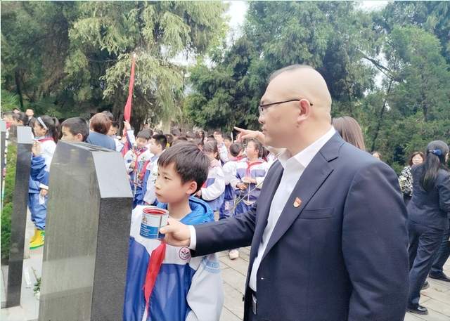 “缅怀英烈魂,凝聚奋斗志,要以先烈们为榜样,学习他们坚韧不拔、英勇不屈的革命精神,前仆后继、舍生取义的进取精神,不求索取、一心为民的奉献精神”。该局办公室负责人吴智勇腑下身子引导小朋友一笔一画地将墓碑上的五角星重新“描红”,让“中国红”沉淀为青少年心中最厚重的底色。
