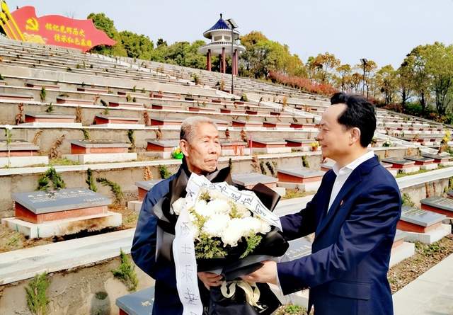 特别值得一提的是,来自梅川镇五里坡村汪少剑烈士的侄儿出现在现场,蔡俊军随手向他献花一起祭奠先烈。他说:“这里是革命英烈长眠的陵园,大家带着悲痛的心情赶来悼念烈士,缅怀烈土,每一位烈士,都是一座精神的丰碑,每一次对烈士的缅怀,都是一种精神传承”。