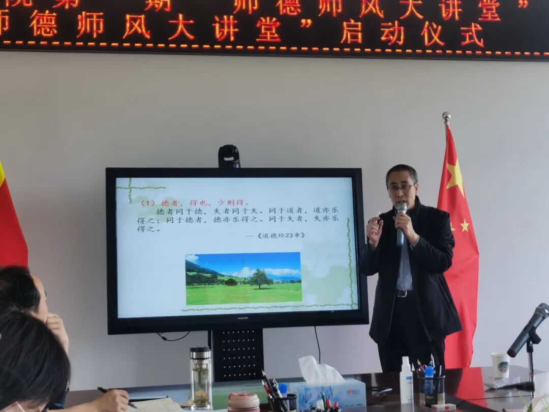 忘不了学校的一草一木,书声朗朗;忘不了课堂上同学们求知的渴望,稚嫩而又坚定的目光。他继续选择留在三尺讲台。2019年,他被学校返聘,继续担任本科、研究生教学及指导工作。2021年被学校聘为督导组文科组组长,担任教学咨询和教学质量监督;2022年被聘为学校第一期“老教授工作坊”指导专家,指导我校四位年轻教师的教学和科研等工作。除此之外,一有时间他还为学校国培教师、区骨干教师、新入职教师等开展“中国传统文化专题系列”讲座。