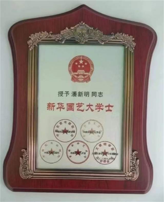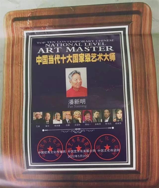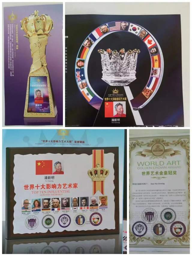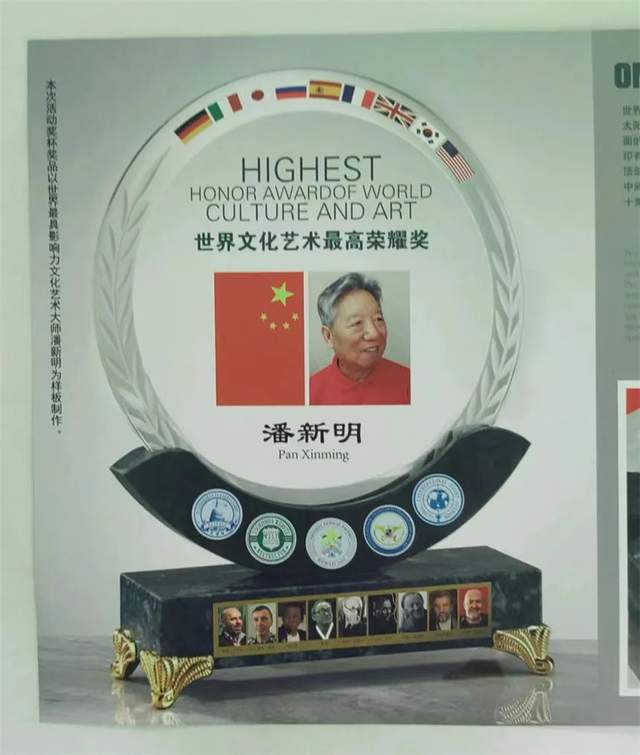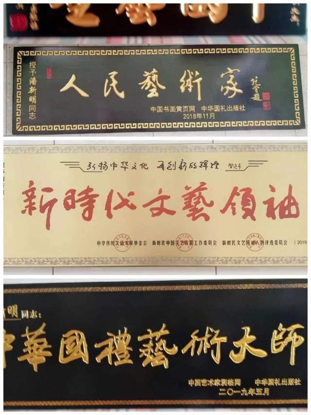 2019年新时代中国文艺发展工作委员会、文艺领袖人物评选委员会等授予“新时代文艺领袖人物”。2020年世界文化艺术网等七大国际媒体评选授予“世界十大殿堂级艺术大师”;荣获大国文豪硕学新华奖评委会等“大国文豪硕学新华奖”金奖被授予“新华国艺大学士”;中国互联网联盟发布,环球人物网等多家媒体播报:“2020年度全球各界顶级人物之最——潘新明”。