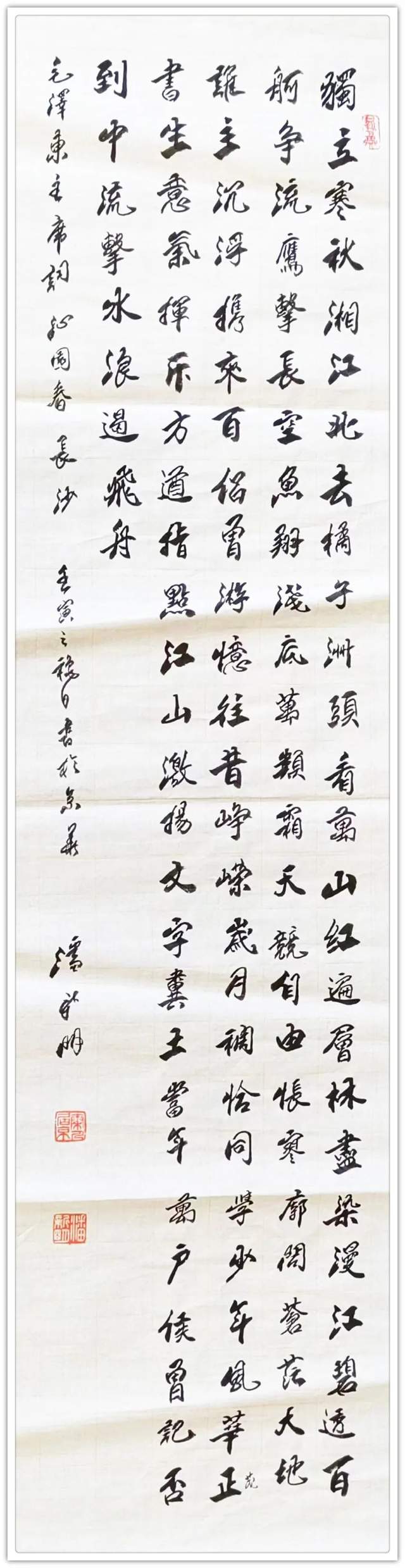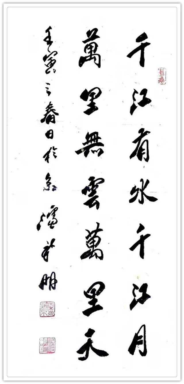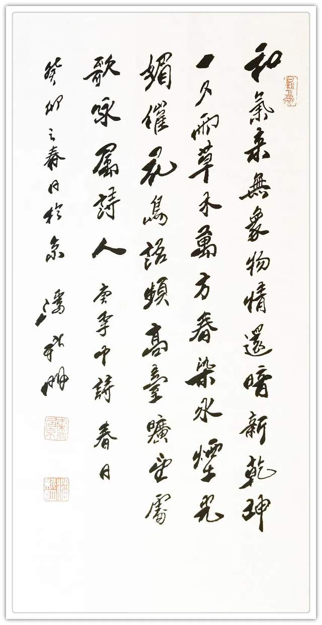 由于长期沉醉笔墨飞扬的书法和诗词之中,潘新明先生的书艺诗情进展长足。他不但深谙书法、诗词之妙,其人品格之高雅,文风之高逸,其特立独行之状态,无不令人敬佩。借助诗词与书法,他将自己心中所思、所乐、所忧、所想一股脑地倾斜于笔墨之下。这样的字无论是从结构到点划,还是从局部到整体,无不蕴涵着丰厚的文化底蕴。无论是诗词还是书法,他均能自出新意。以潘新明先生目前的艺术发展态势来看,随着其艺术成就和社会影响力不断攀升,其未来的市场号召力将不可限量。