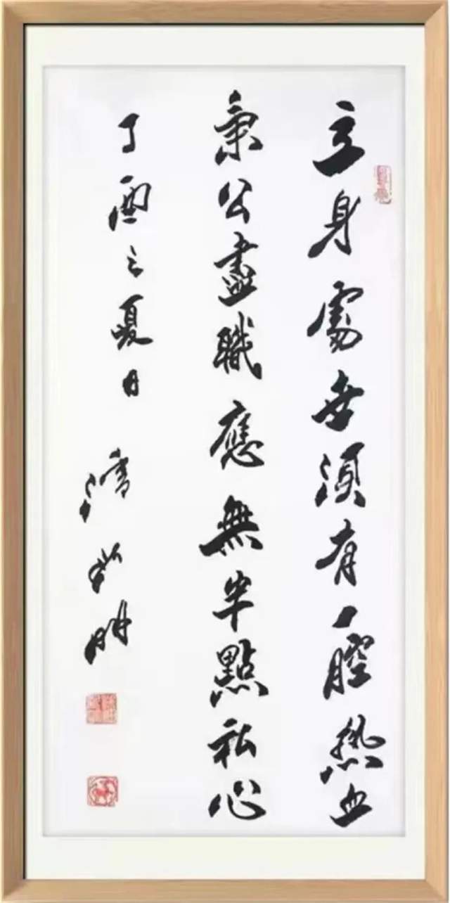 在五十多年笔墨生涯中,他继承祖国传统书法艺术基础上,博采古今之秀,融入新时代、新思想、新内容等元素、独具匠心,摸索出了一条自己书法、诗词韵语艺术的创作思维、方法、路径;作品出神入化,既有历史艺术经典的传承又有新时代的风范,实力更高于声望。