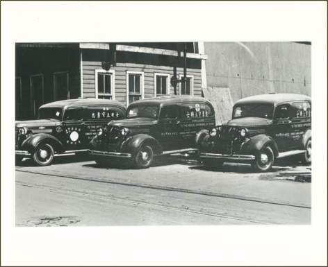 衣联会捐赠的救护车运送回国前在码头的照片(中国华侨历史博物馆藏)